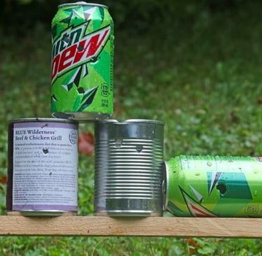 Les tireurs utilisent souvent des armes à air comprimé, des carabines, des fusils de petit calibre ou des pistolets pour tirer sur des objets tels que des canettes, des bouteilles en plastique, des cibles en papier, des fruits ou d'autres objets semblables.